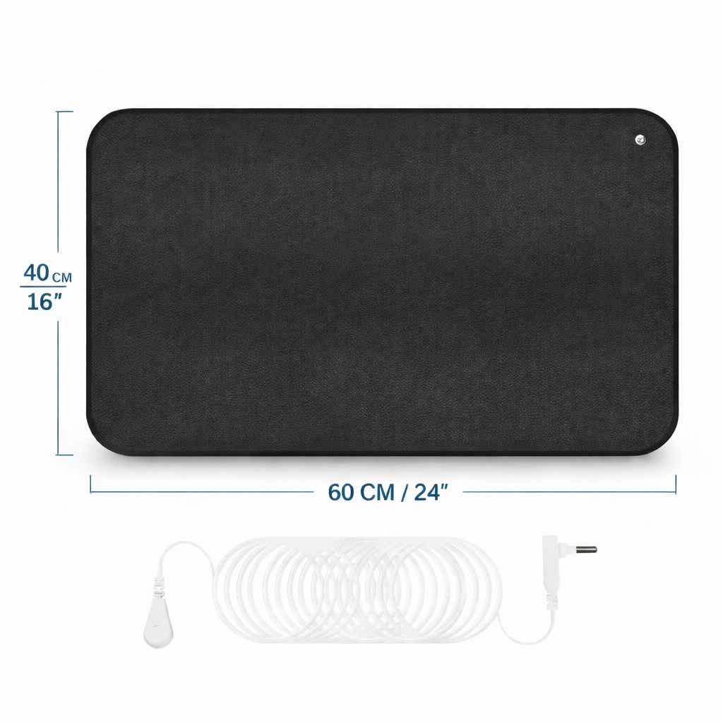 The Rooted Restore Mat bridges that gap. By connecting to the Earth’s surface charge through your home’s grounding system, it helps restore your natural balance while you sleep, work, or relax. Crafted from premium carbon-infused vegan leather, it’s a simple, passive way to support your body’s daily recovery and overall vitality. Rediscover what it feels like to wake up feeling truly restored—starting the moment you plug in.